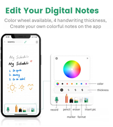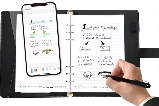 Real-Time Digitization - The pen uses an infrared camera and a unique micro-dot pattern on specialized paper or LCD Pad to track movement. This allows the writing or sketches to appear instantly in the app on a paired smartphone or tablet via Bluetooth.